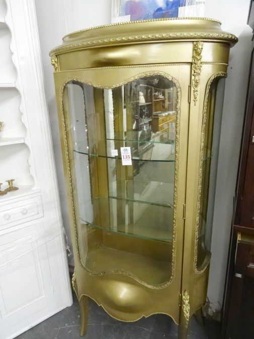 Gold Guilded Bow Front China Hutch