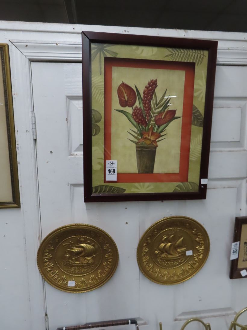 Gold Plated ? Tall Ship Wall Plates, Framed Floral