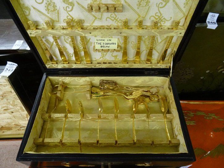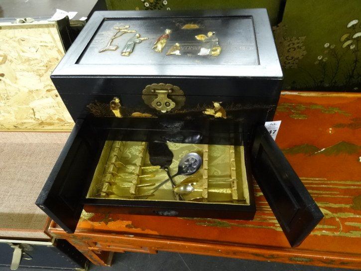 Gold Tone Flatware in Mother of Pearl Oriental Accent Box