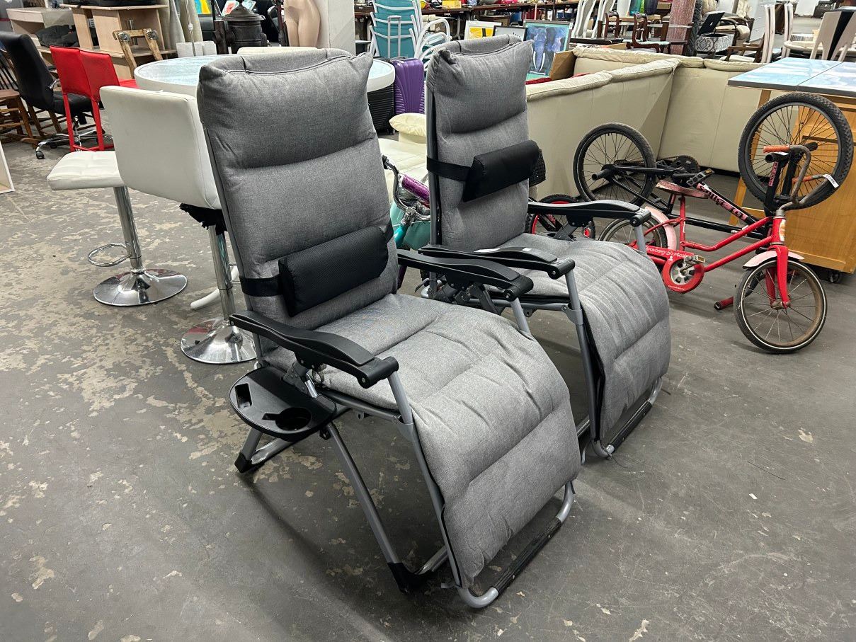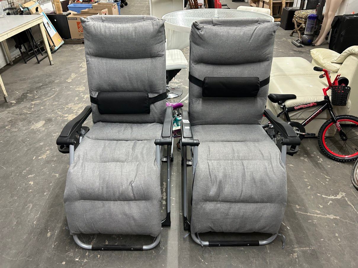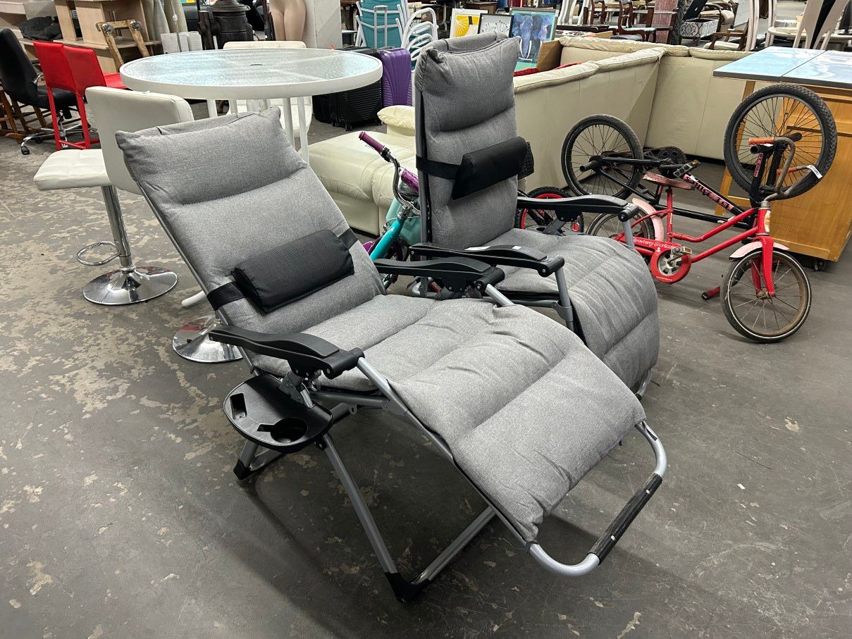 Gray Folding Patio Loungers - Pair