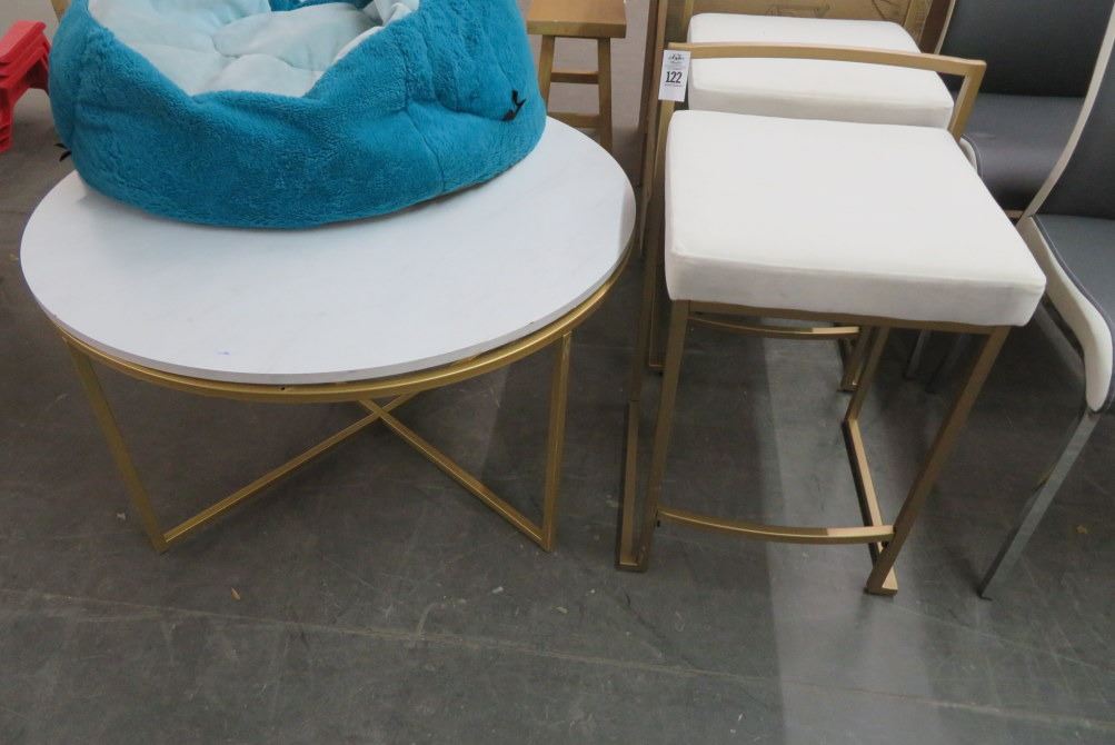 Grey Metal Padded Stools (4) w/Round Coffee Table