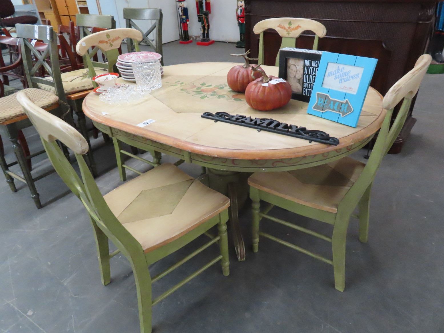 Hand Painted Oval Dining Table w/Leaf and 4 Chairs