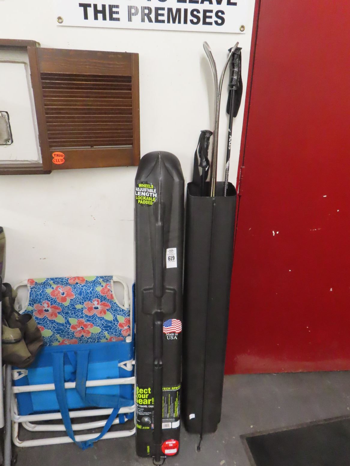 Hard Telescopic Travel Case w/Wheels Inside - Pair of Snow Skies and Poles
