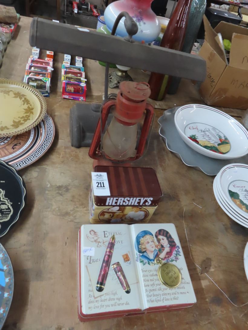 Hershey/Love Tins, Vintage Lantern, Desk Lamp