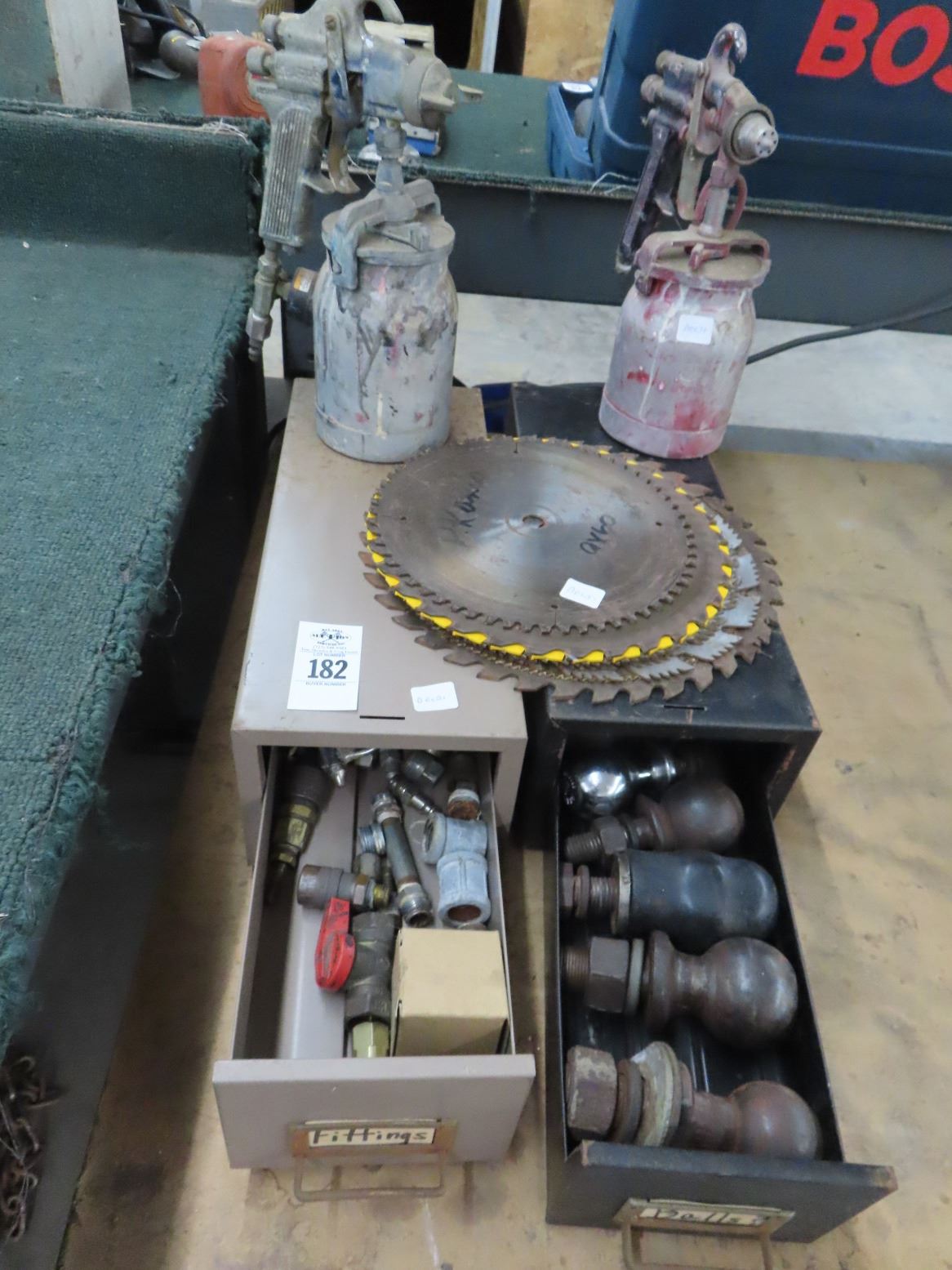 Hitch Balls, Parts Bins, Air Fittings, Circular Saw Blades, Paint Guns