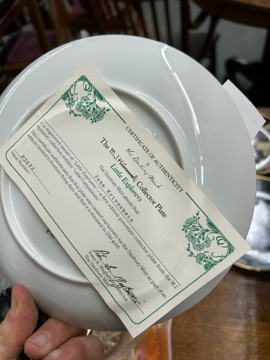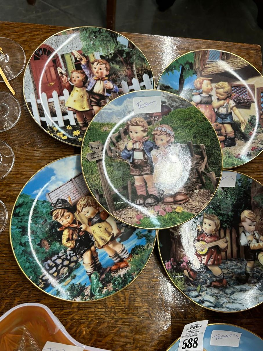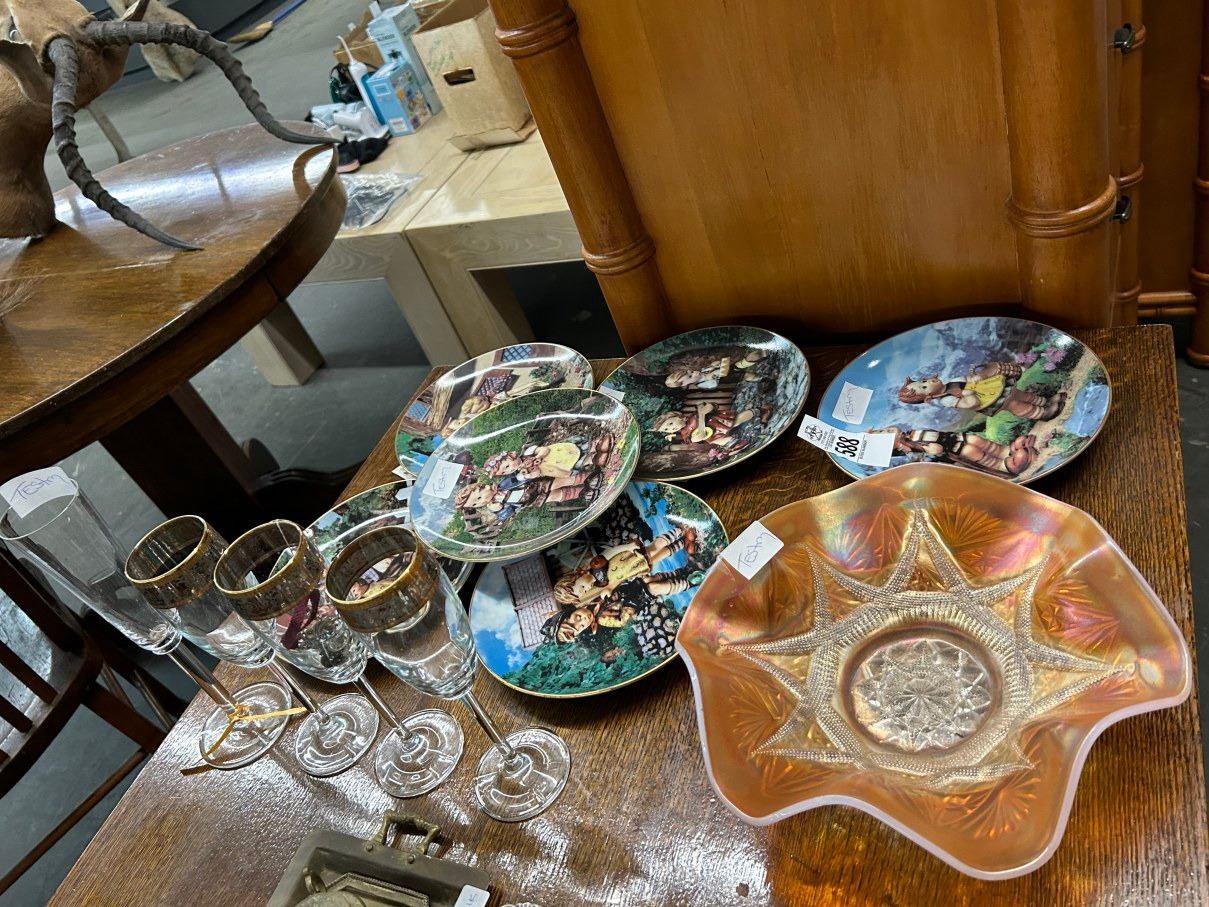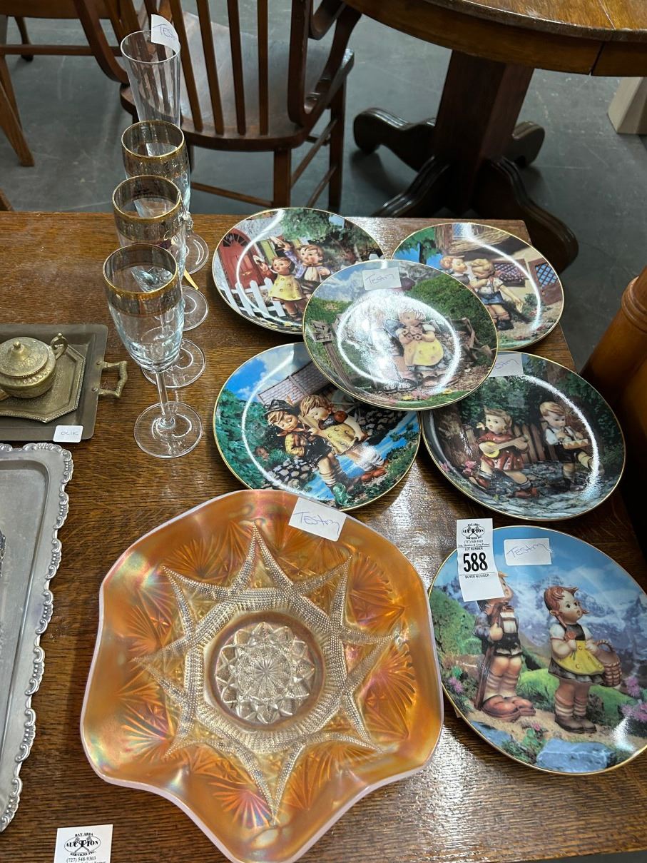 Hummel Collector Plates 6 w/COA's, Carnival Glass Bowl, Wine Stems