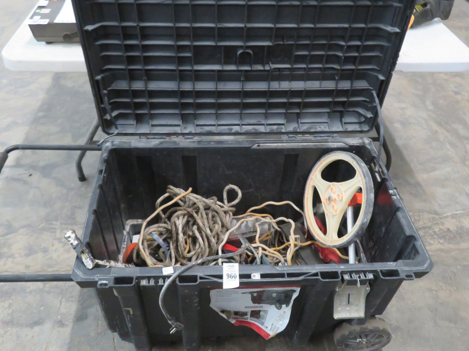 Husky Large Rolling Tool Tote w/Measuring Wheel and Asst. Tools