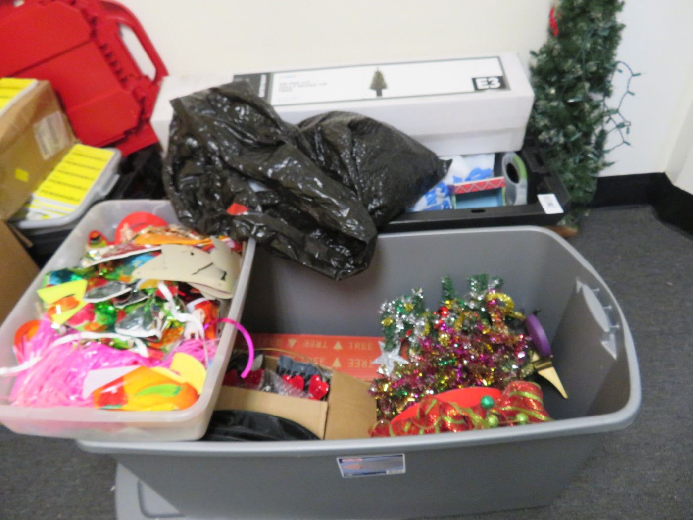 Husky Storage Tote w/4 PreLit Tree and Asst. Holiday Décor