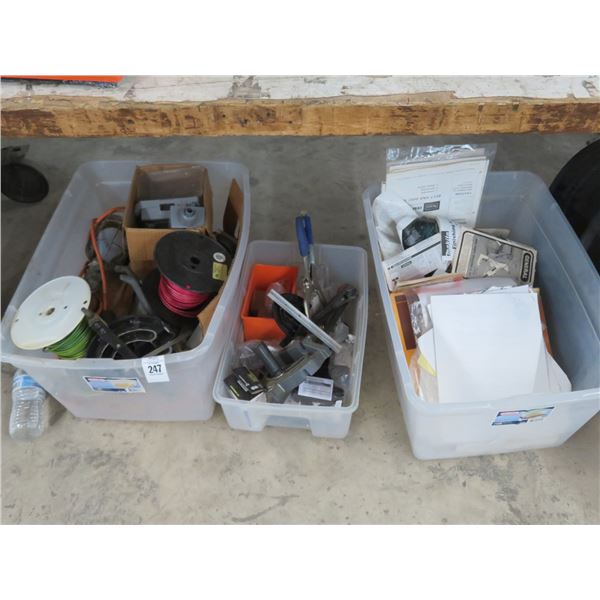 Wire Spools, Drop Light, Electrical Hardware - 3 Bins