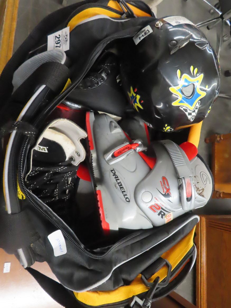 Ice Skates, Snow Ski Boots, Helmet and Duffle Bag