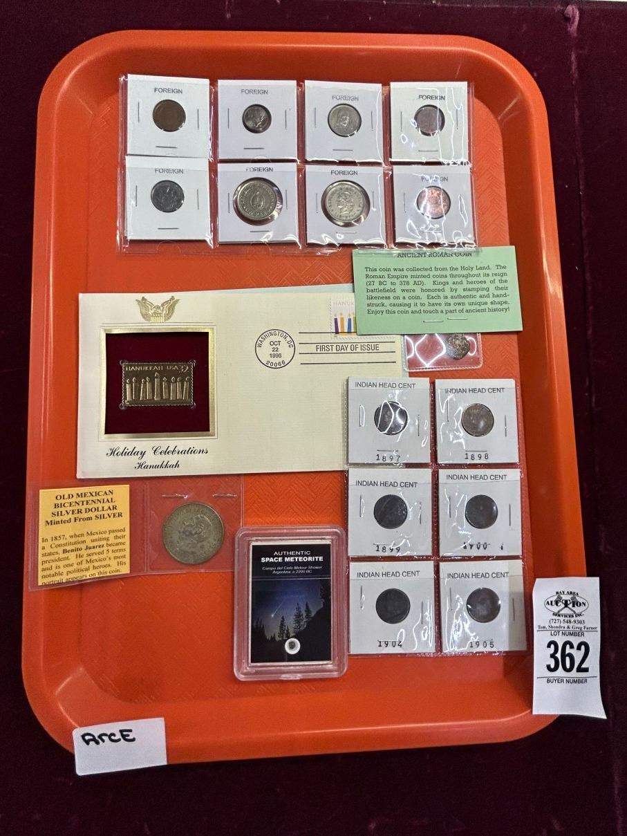 Indian Head Cents 6, Space Meteorite, First Day Stamp, Roman, Foreign Coins