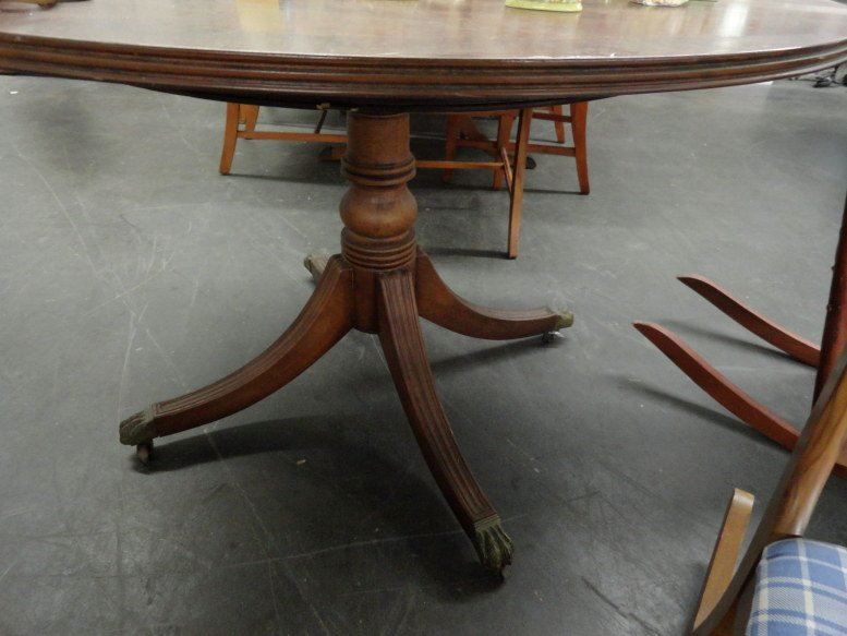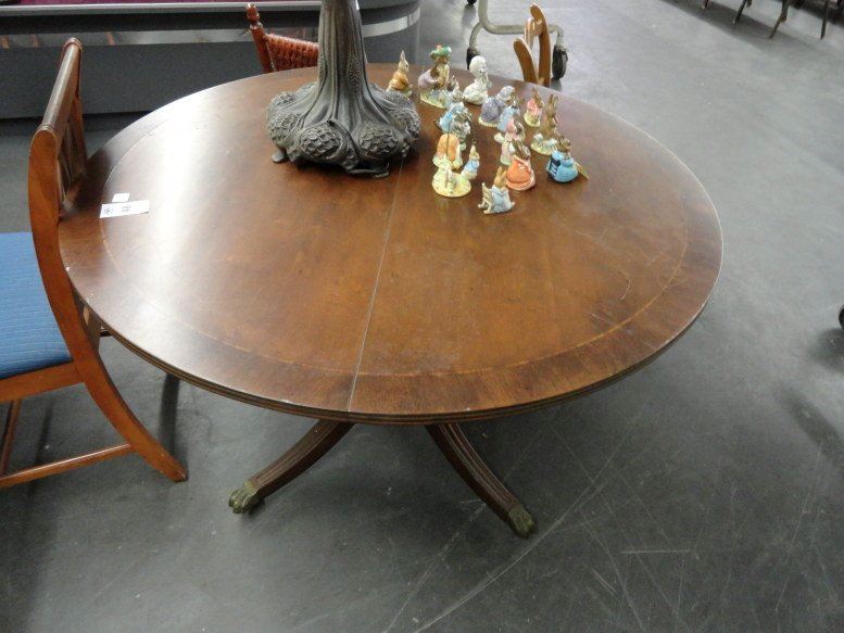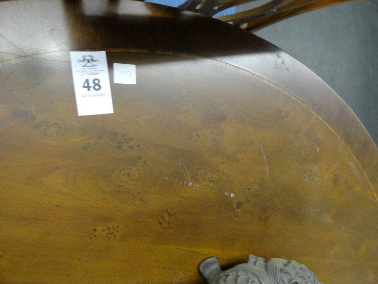 Inlaid Wood Table w/Brass Paw Feet