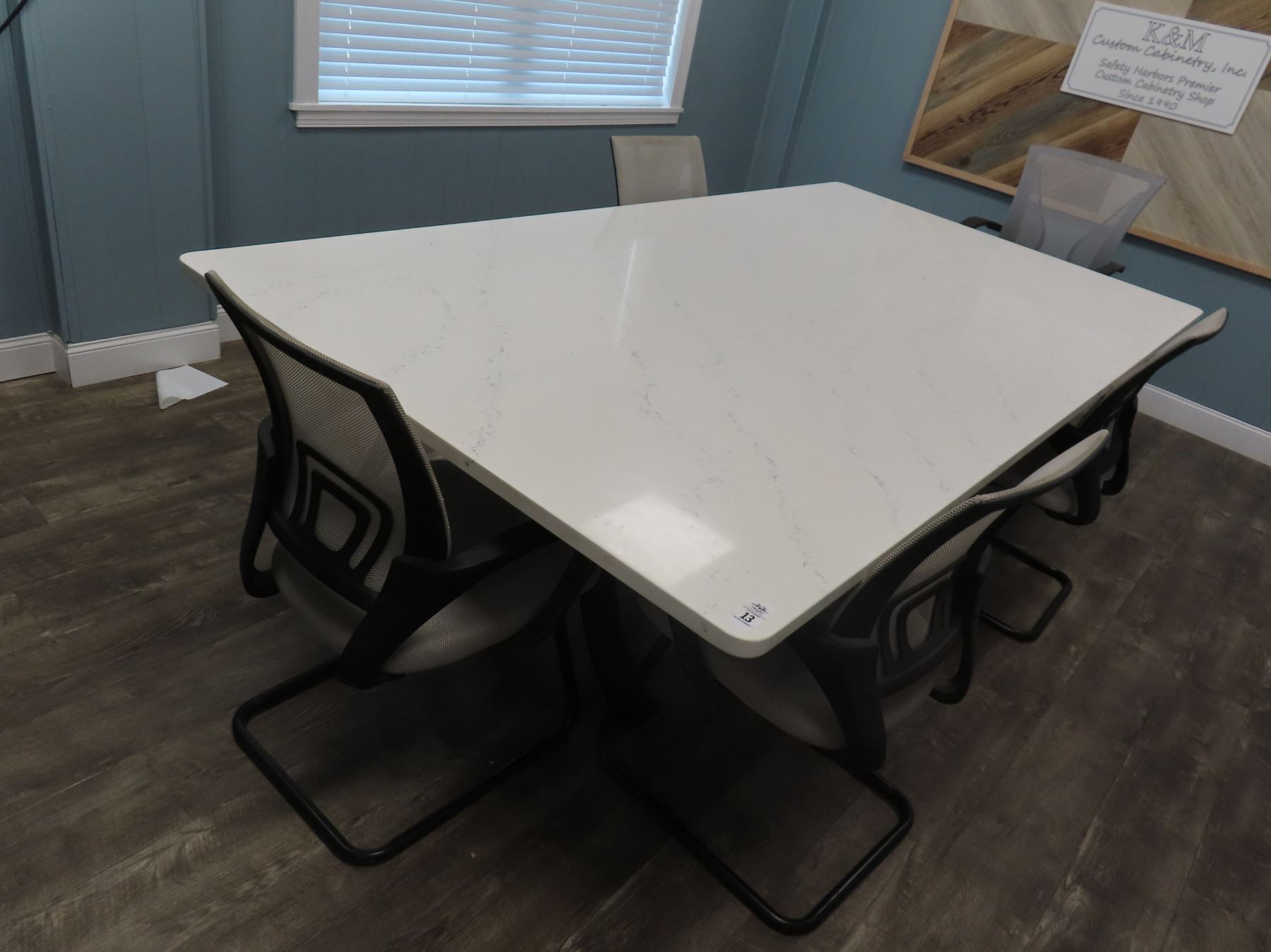 Iron Base Marble Top Large Conference Table w/5 Chairs