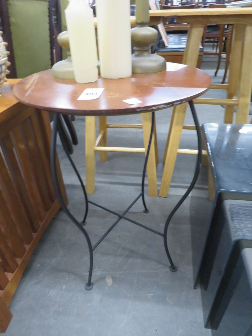 Iron Base Round Mahogany Top End Table