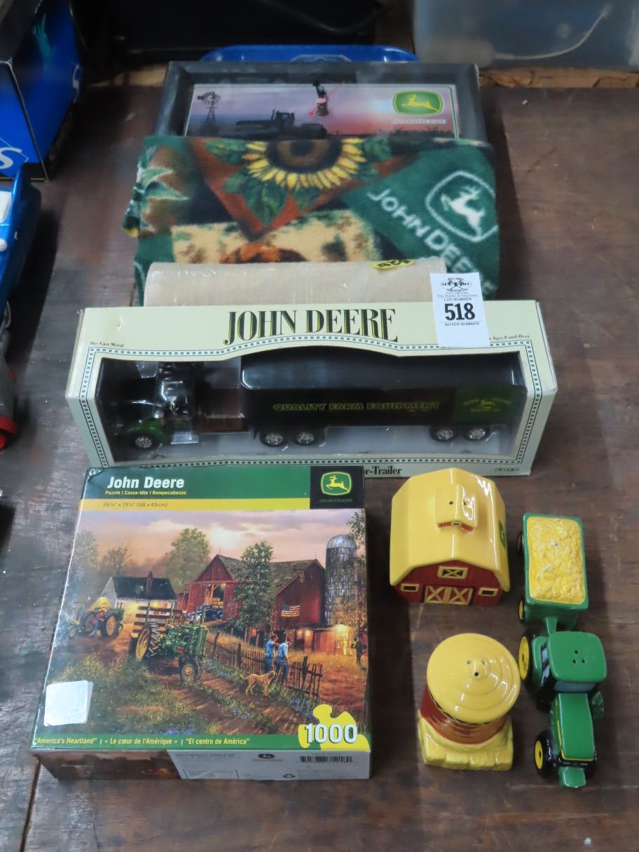 John Deere Puzzle, Clock, Blanket, Collectibles
