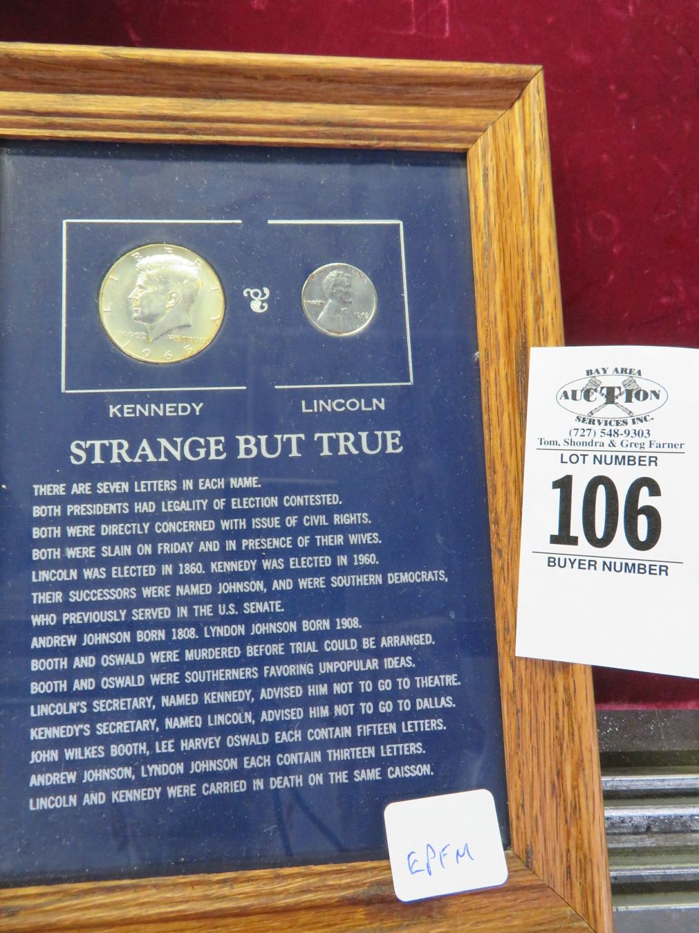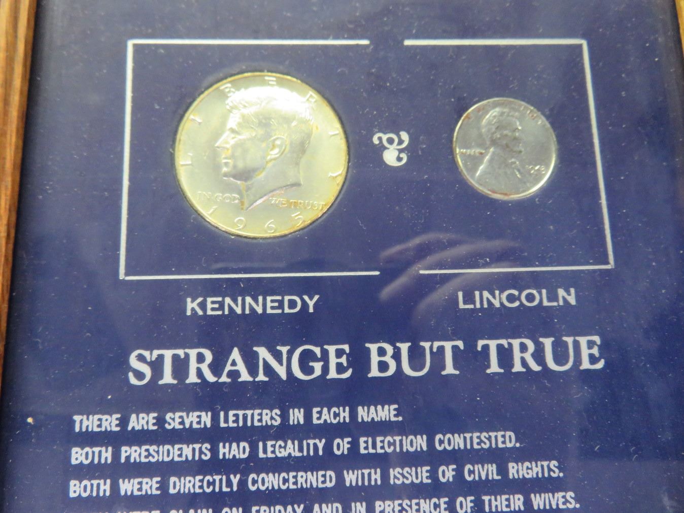 Kennedy/Lincoln Framed Coins w/Strange But True Memorabilia