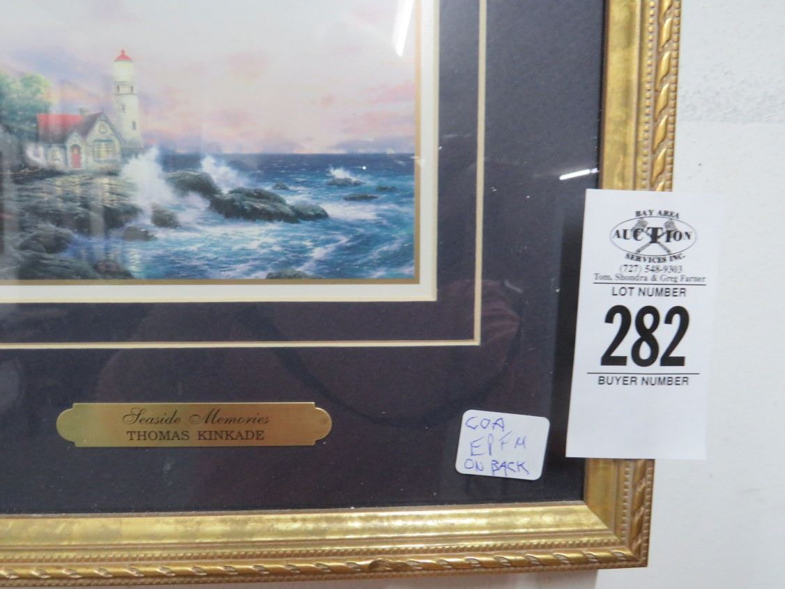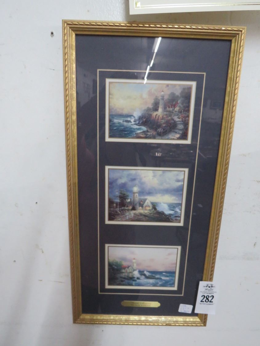 Kinkade Lighthouse Triple Framed Wall Art Seaside Memories w/COA