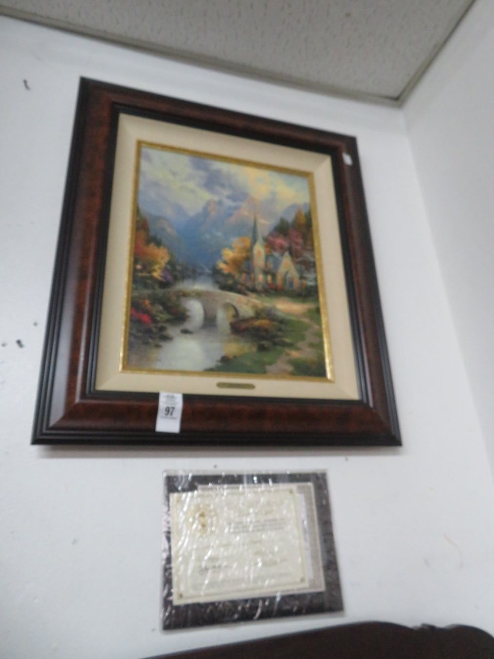 Kinkade Print On Canvas The Mountain Chapel w/COA - 30 x 36