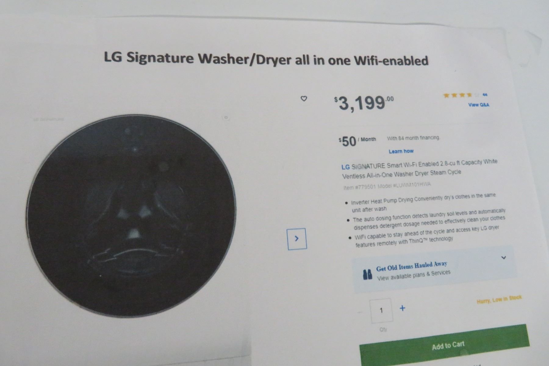 LG Signature White Washer/Dryer All In One Wi-Fi Enabled