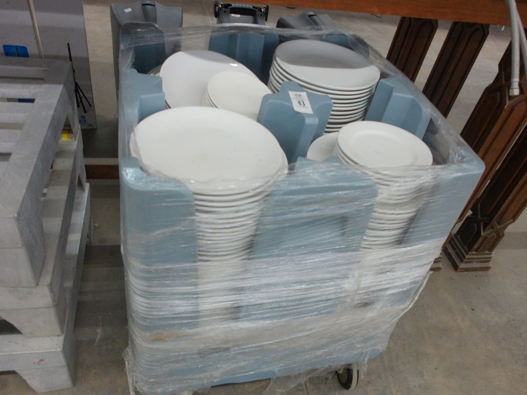 Large Lot of Commercial White China Dishes w/Dish Dolly