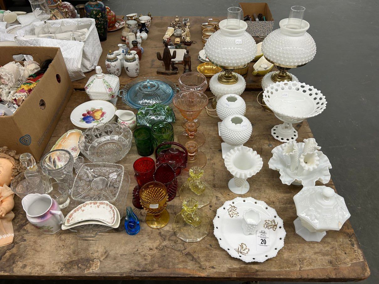 Large Lot of Depression Glass, Milk Glass, Bowls, Dishes, Candlesticks