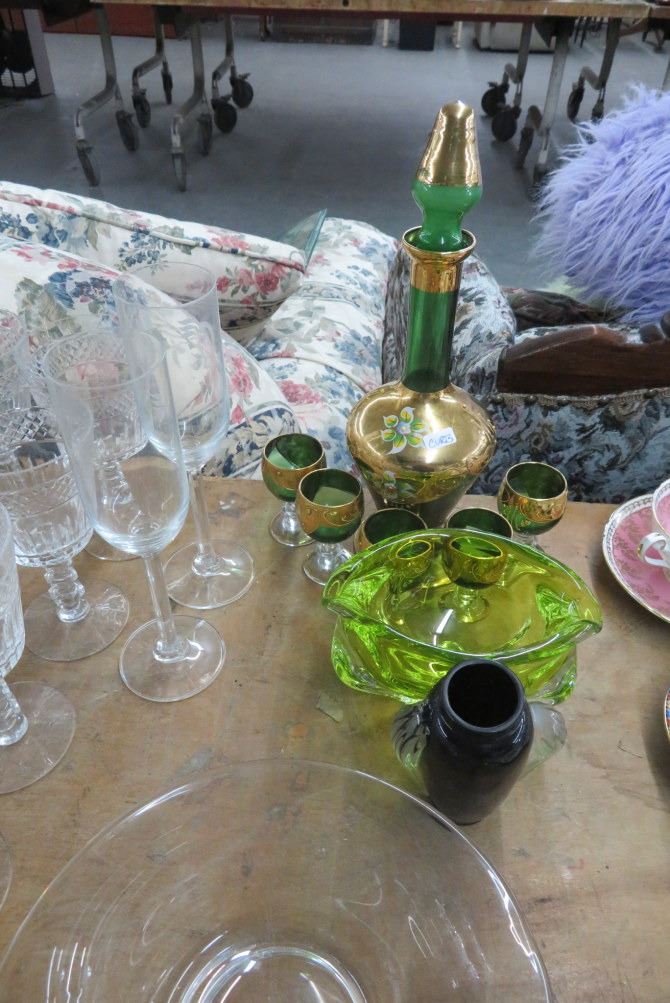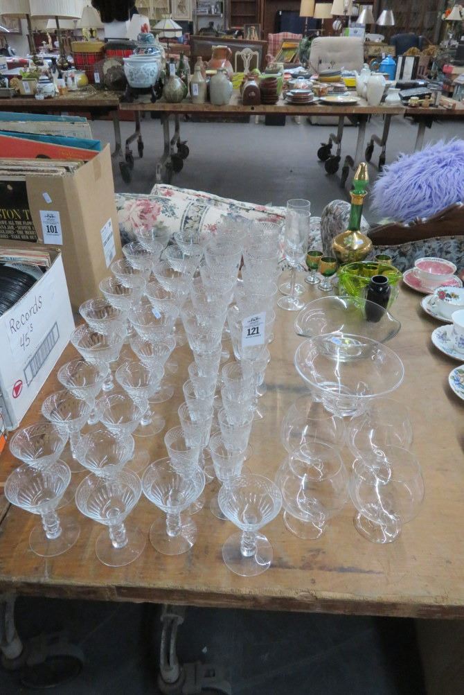 Large Lot of Glass Stemware & Glass Decanter Set