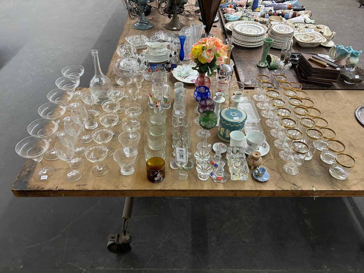 Large Lot w/Etched/Glass Stems, Cut to Clear Candlesticks, Bud Vase