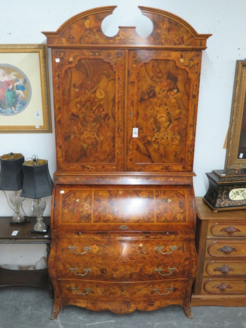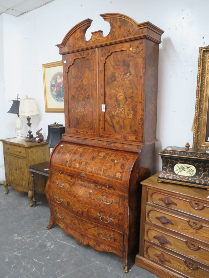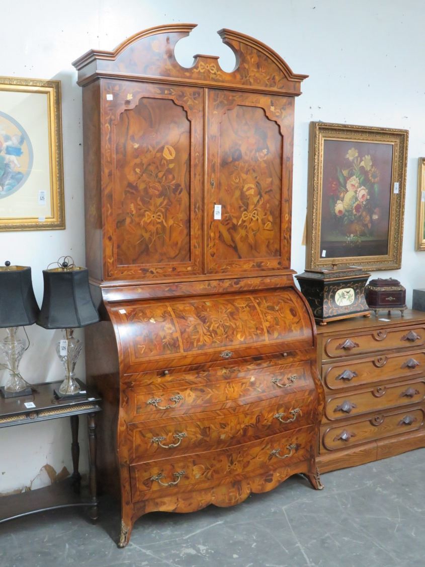 Large Ornate Provincial Roll Top Floral w/Bees Motif Chest w/Upper