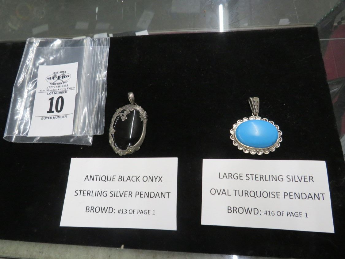 Large Sterling Set Black Onyx/Turquoise Pendants - 2