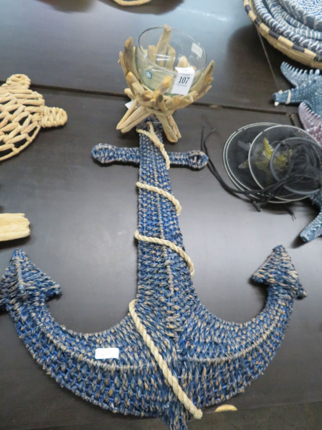 Large Woven Anchor Wall Décor, Raw Wood Footed Bowl