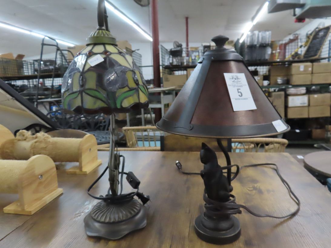 Leaded Glass Floral Lamp, Cat Base Lamp