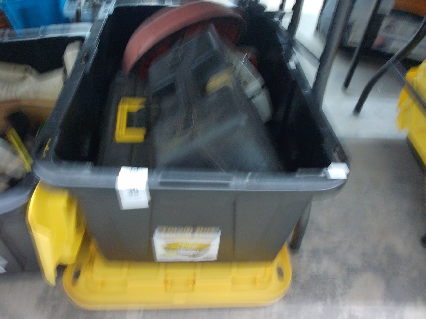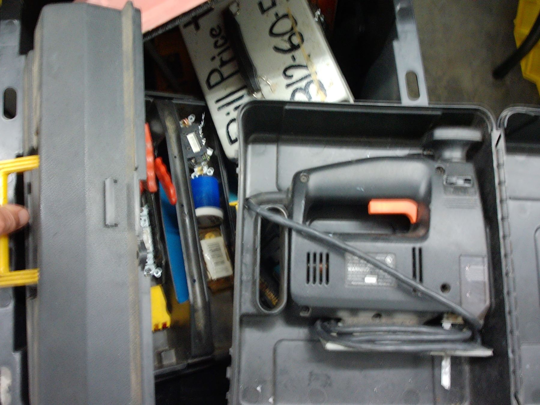 Lidded Tote w/Jig Saw, Toolbox, Pressure Washer Surface Cleaner, Air Tools, Supplies