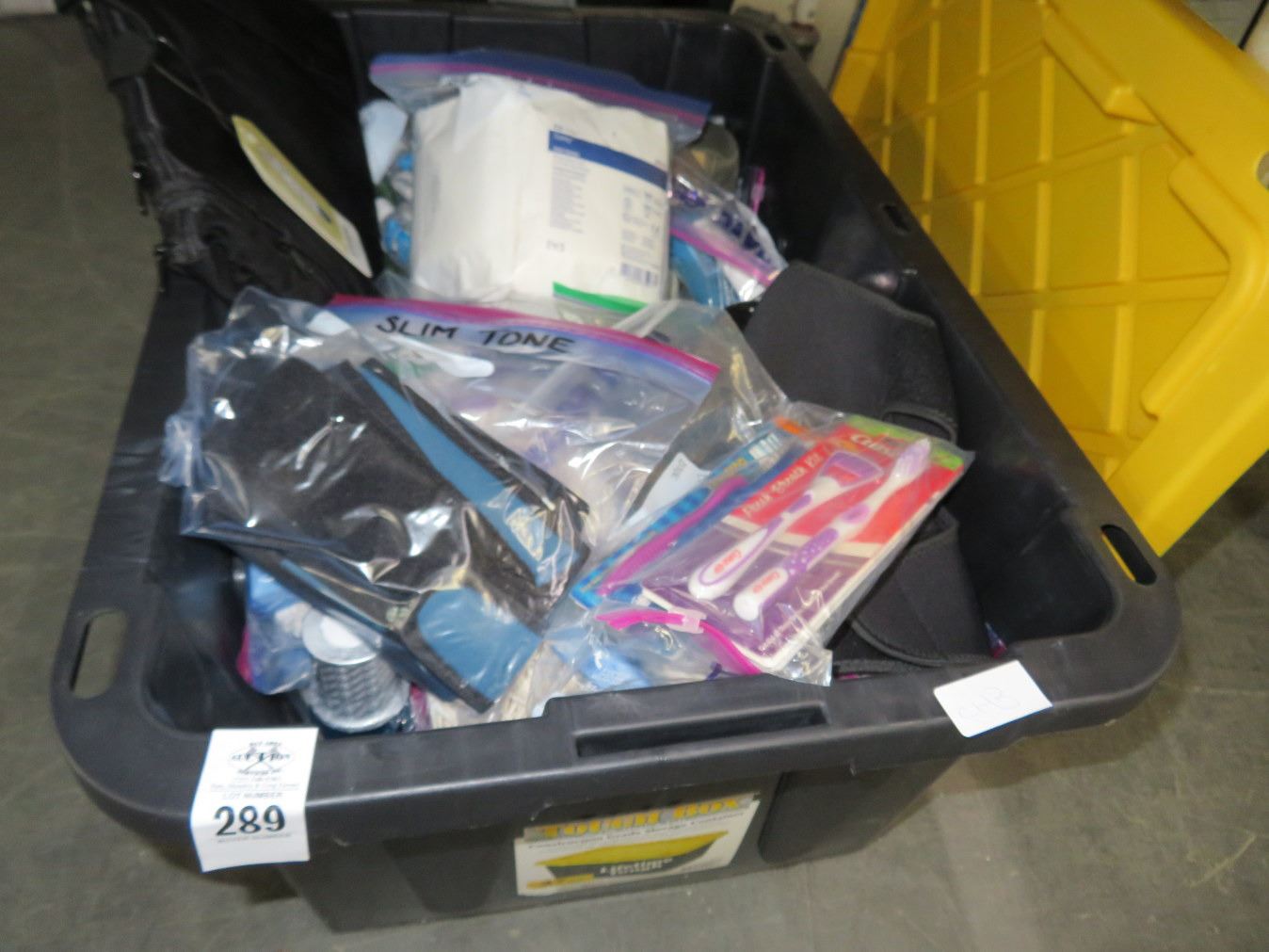 Lidded Tub w/Toothbrushes, Personal Hygiene Products and More