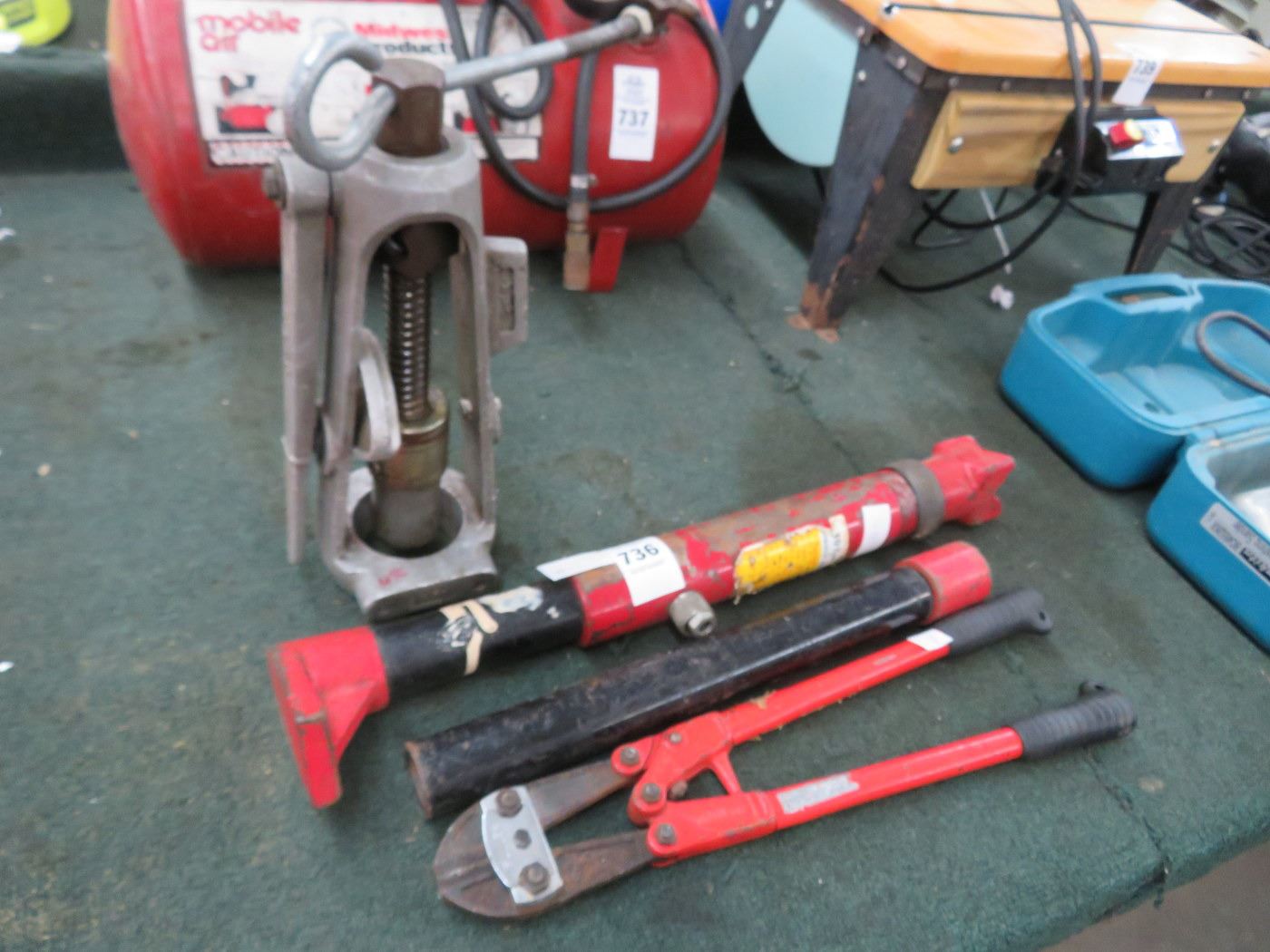 Lot of Bolt Cutters, Hydraulic Ram & Bearing Press