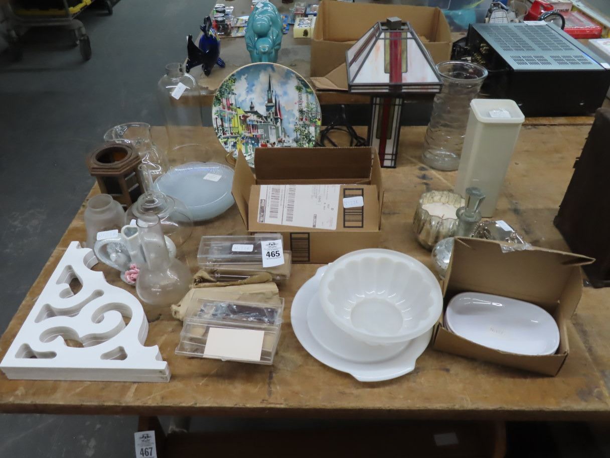 Lot of Bowls Vases, Leaded Glass Lamp, Plates and Bottle Opener