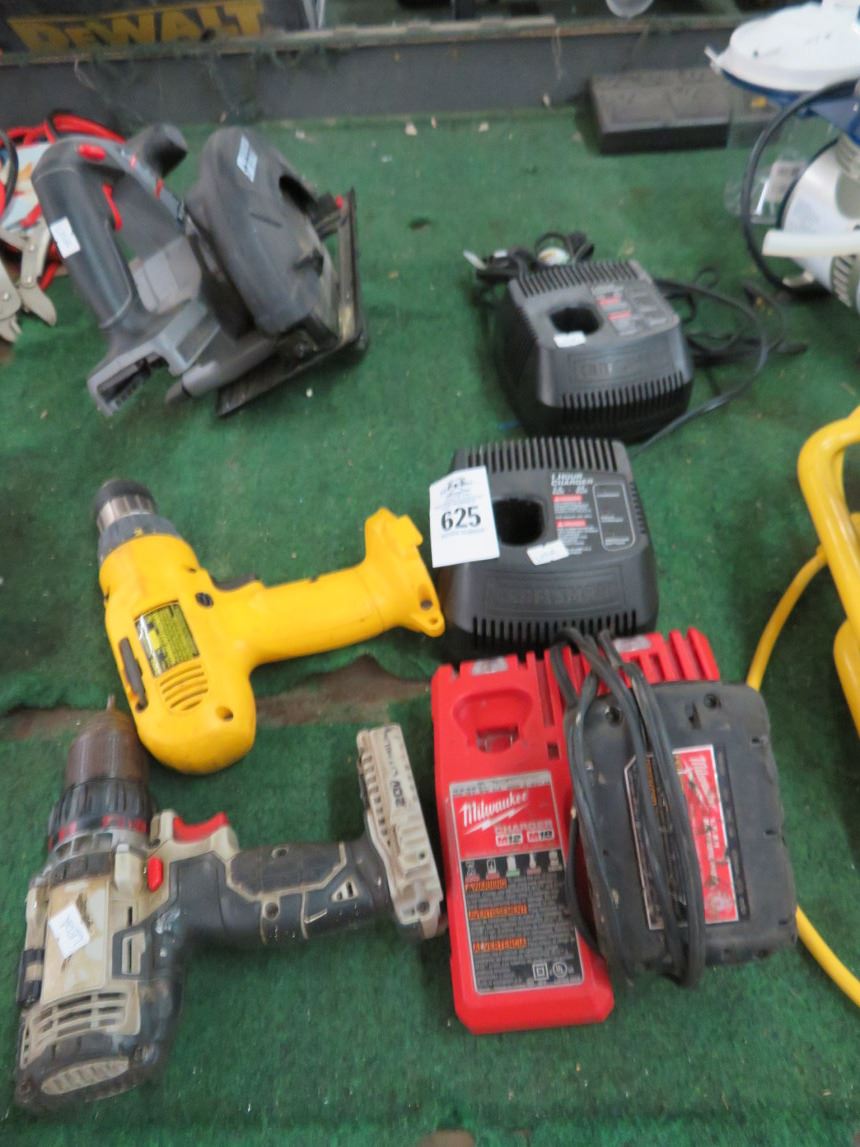 Lot of Cordless Porter Cable Saw, Dewalt, Milwaukee Drills
