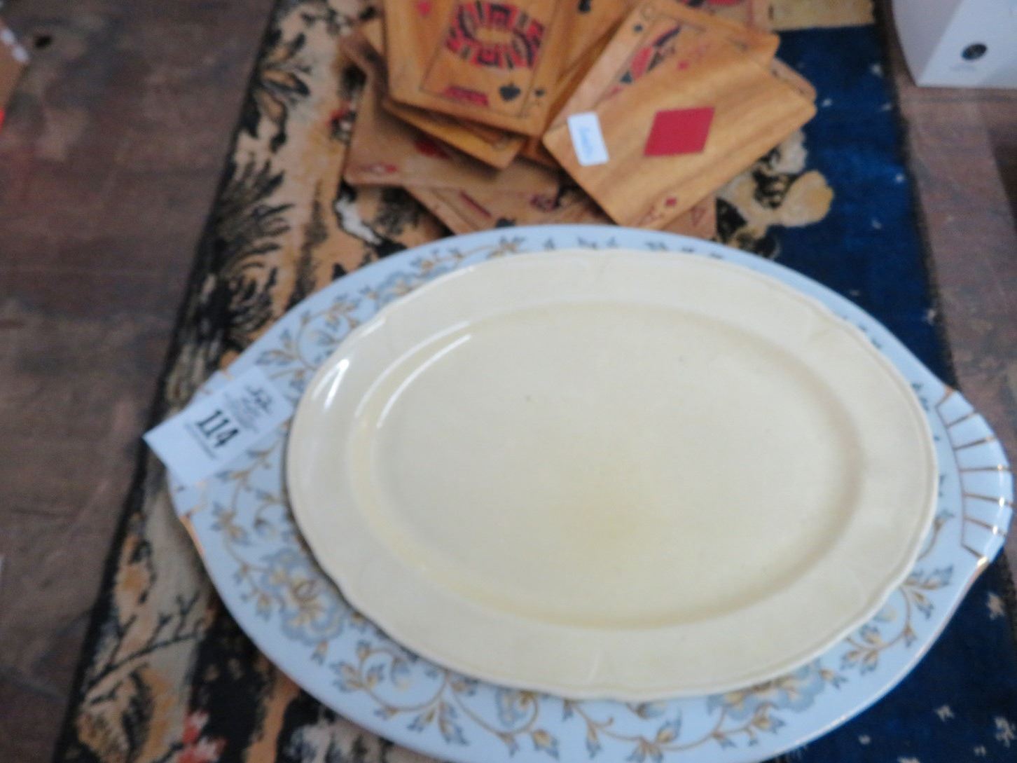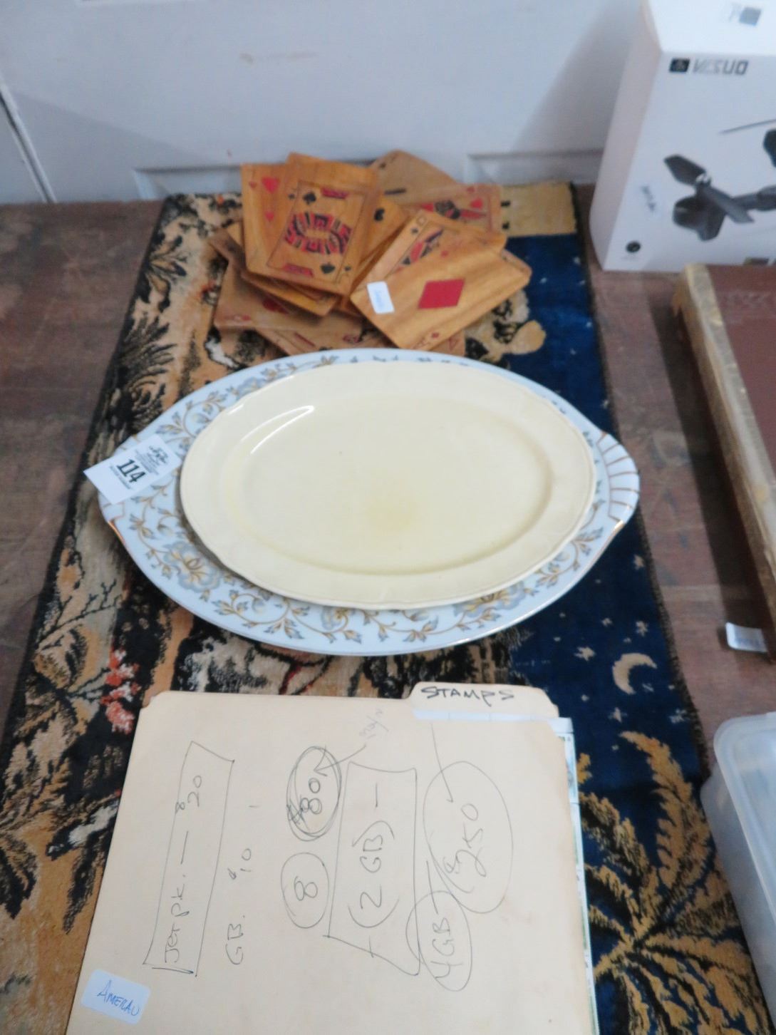 Lot of Decorative Platters, Stamps, Table Runner & Card Plates