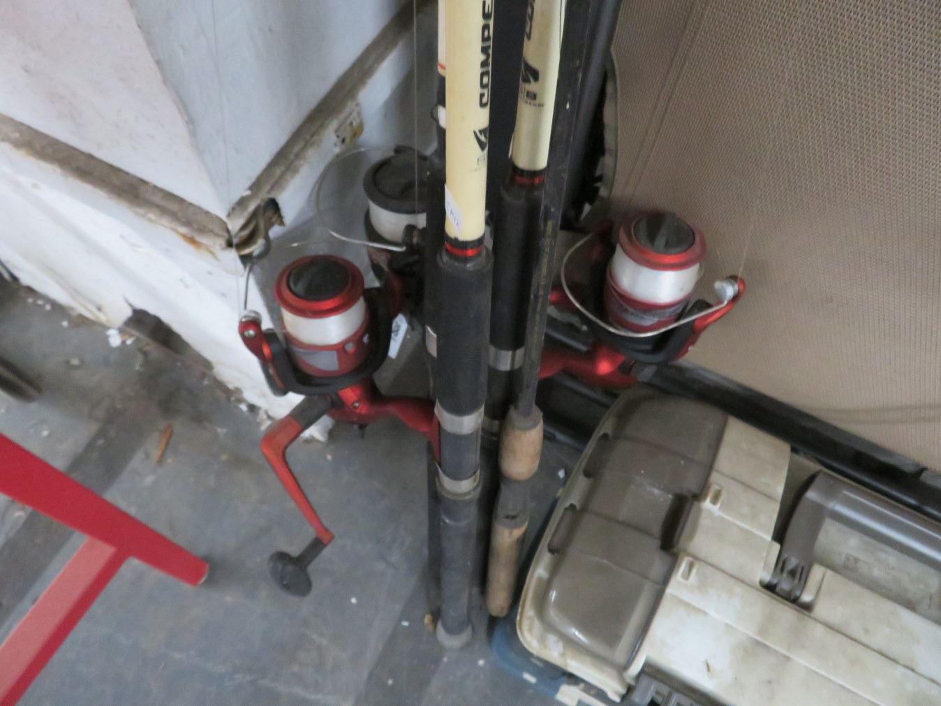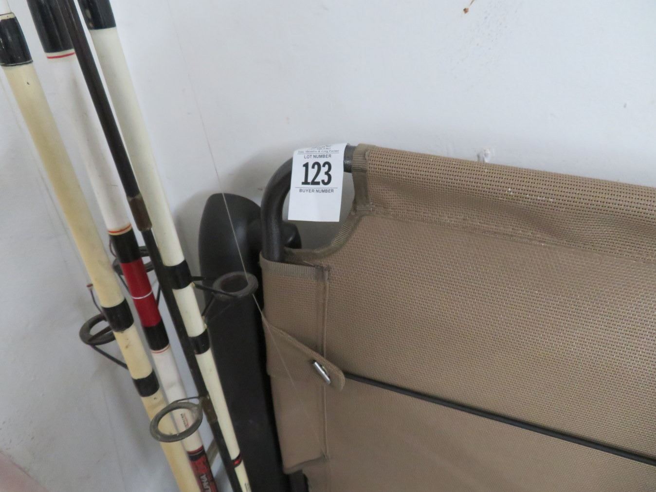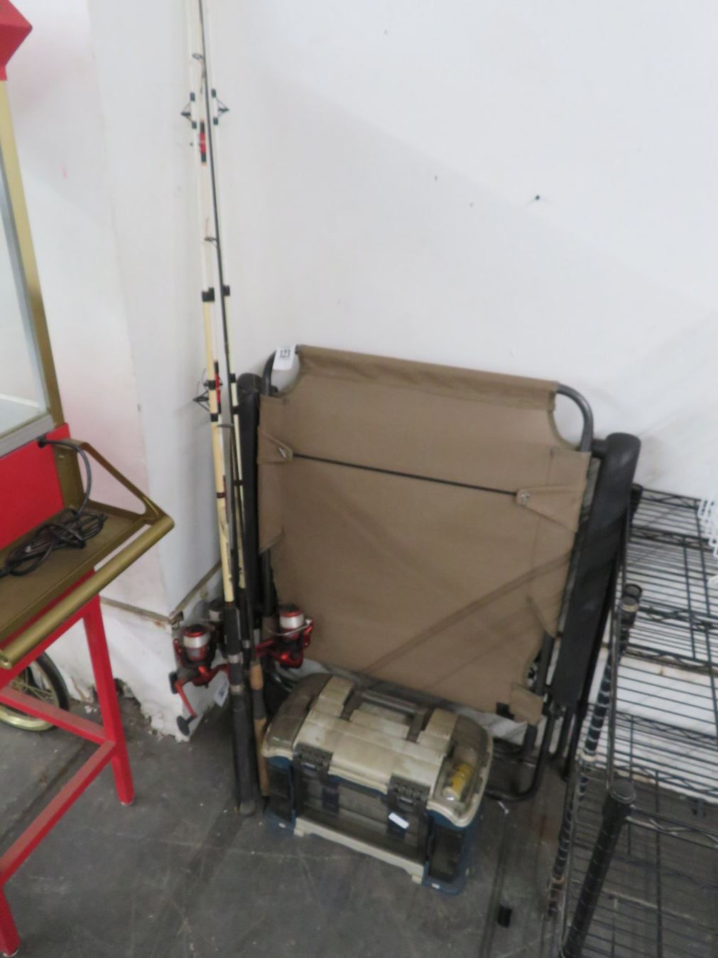 Lot of Fishing Poles, Tackle Box, Oversized Folding Chair