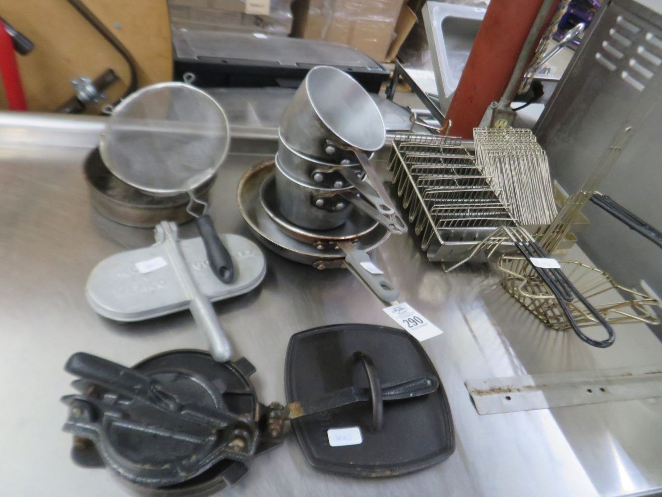Lot of Fry Baskets, Grill Presses & Fry Pans