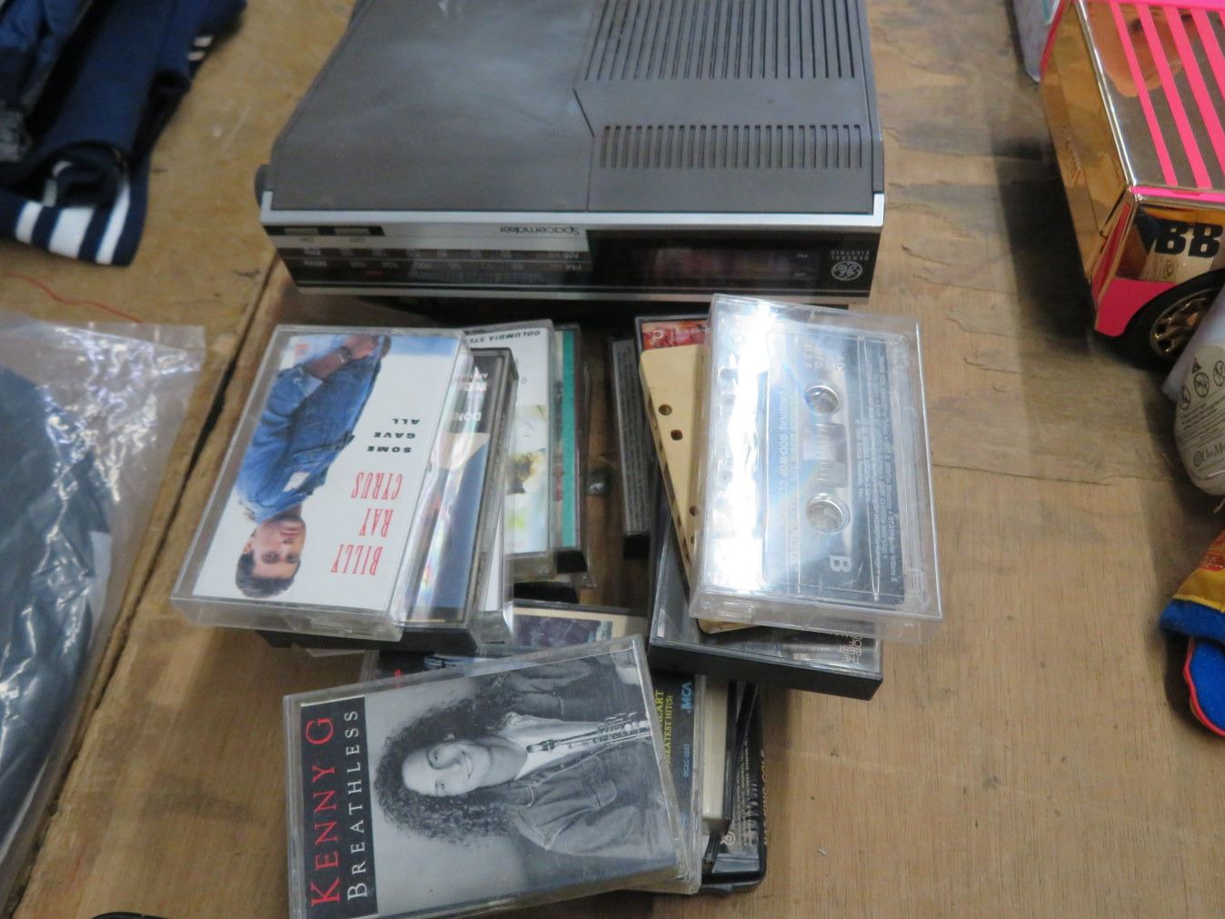 Lot of GE Radio, Asst. Cassettes & Spinning Mantle Clock