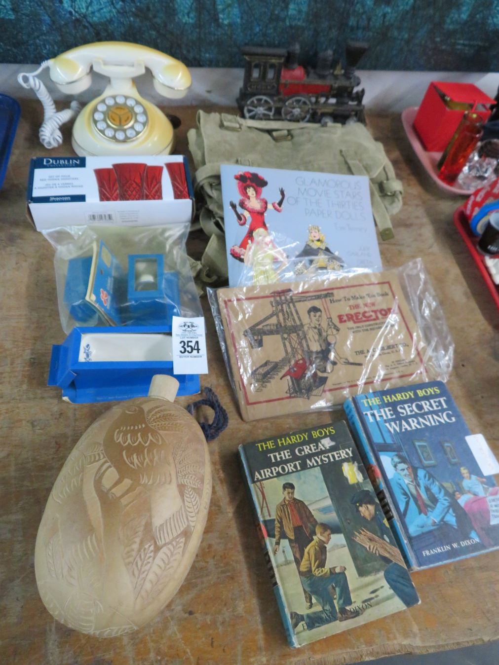 Lot of Hardy Boys Books, Cast Iron Train Door Stop and More