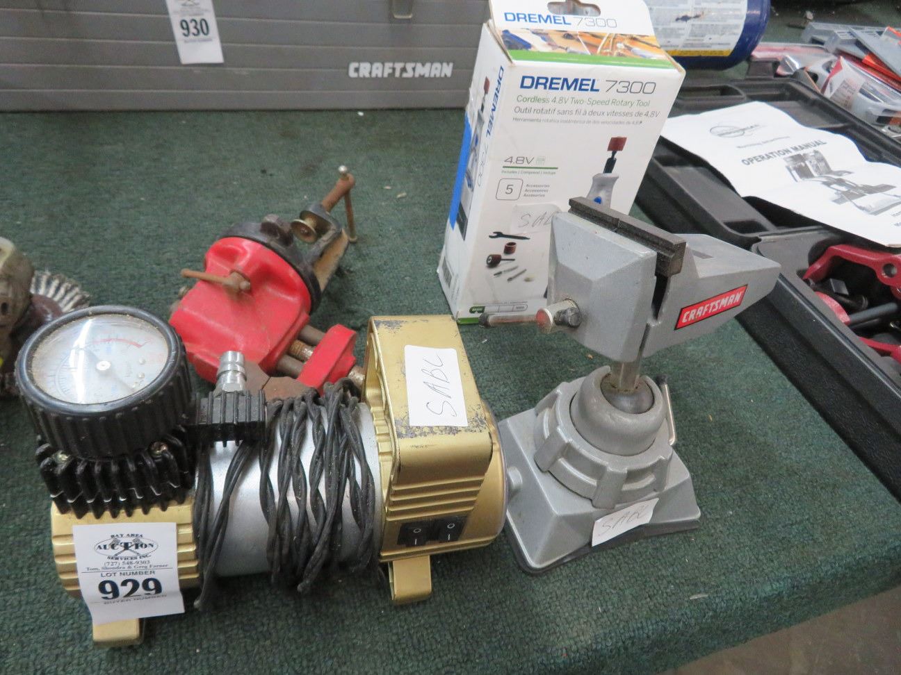 Lot of Inflator, Dremel 7300 and Bench Vise