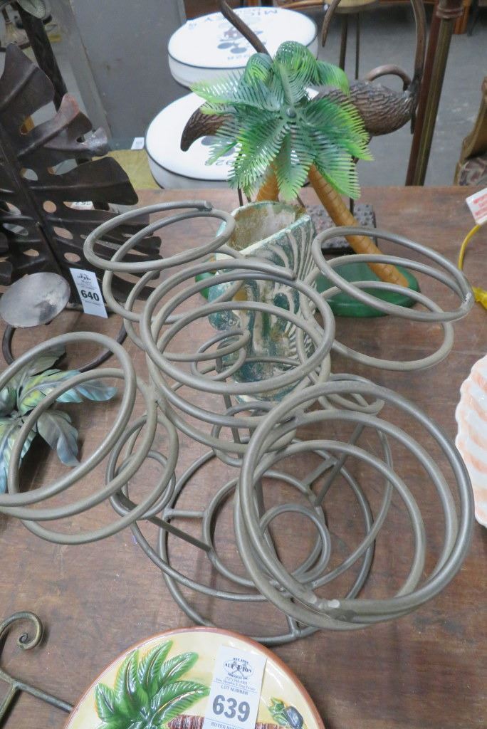 Lot of Metal Seashells, Palm Vase, Wine Rack & Plate Rack