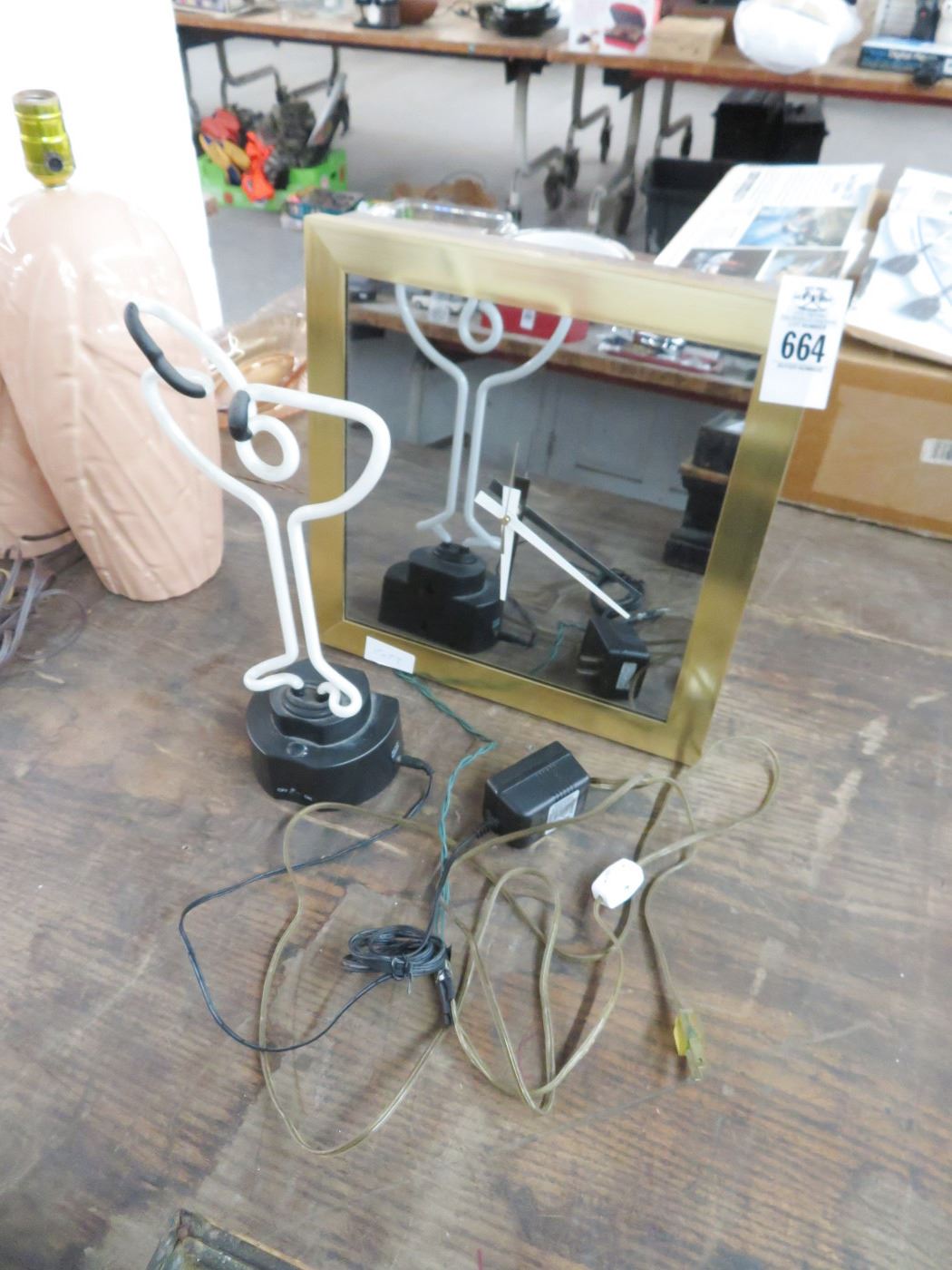 Lot of Mirrored Clock and Martini Neon Standing Sign - No Shipping