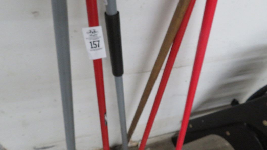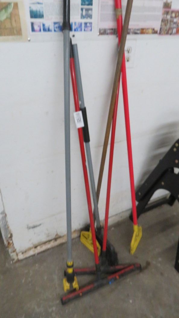 Lot of Mop Handles, Brooms & Squeegee