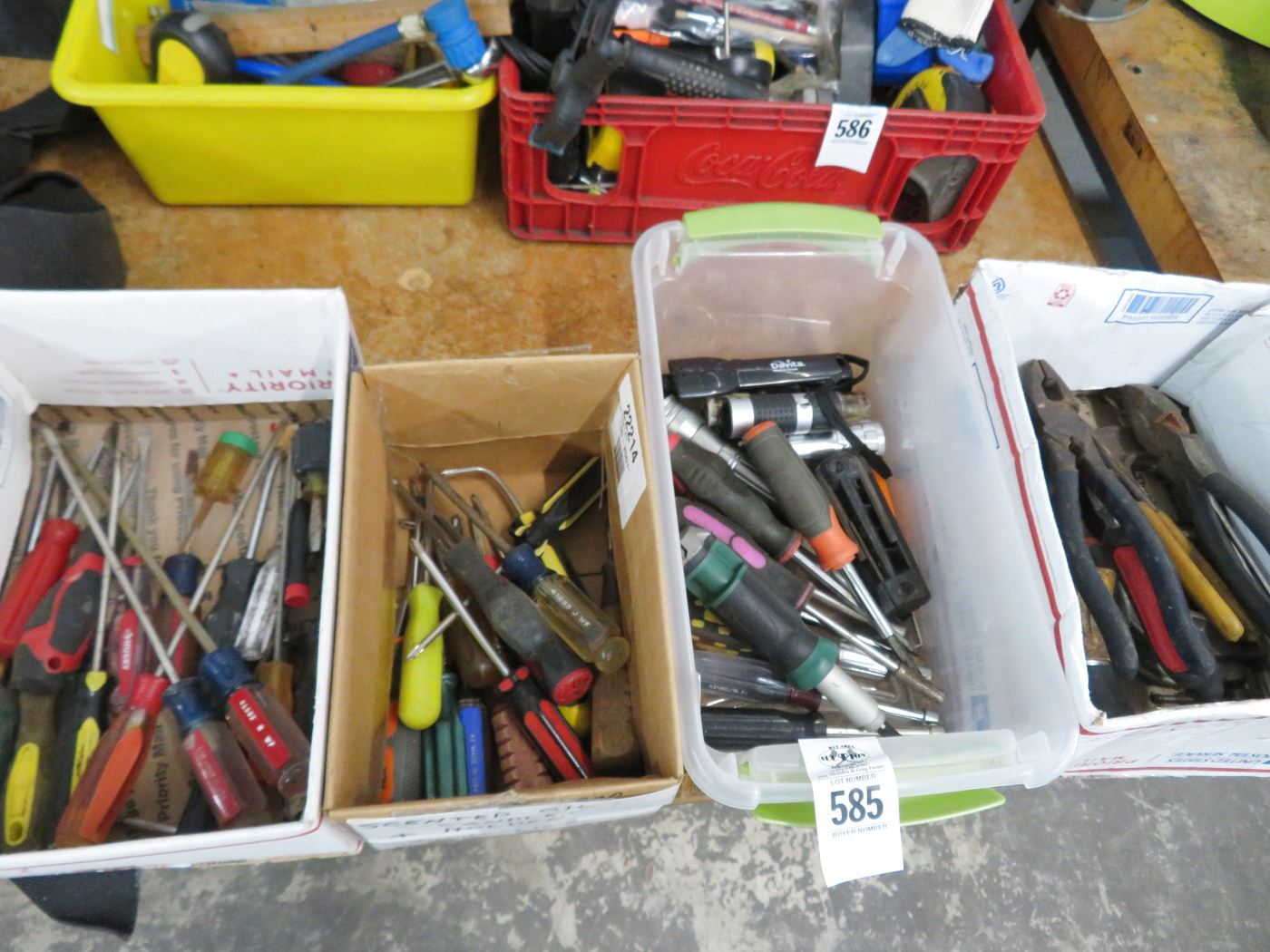 Lot of Screwdrivers, Pipe Wrench and Wire Cutters