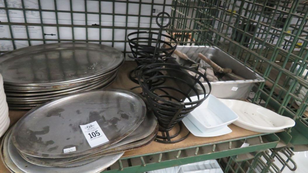 Lot of Serving Trays, Hot Plates & Steak Knives