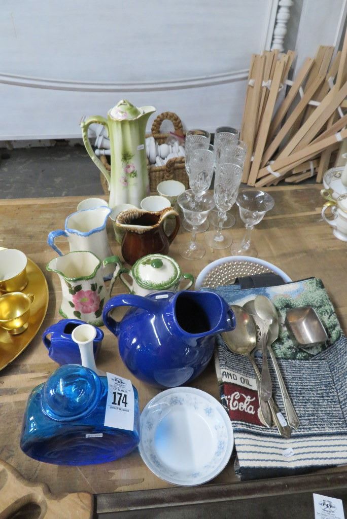 Lot of Stemware, Pictures, Vases, Silver Serving Spoons