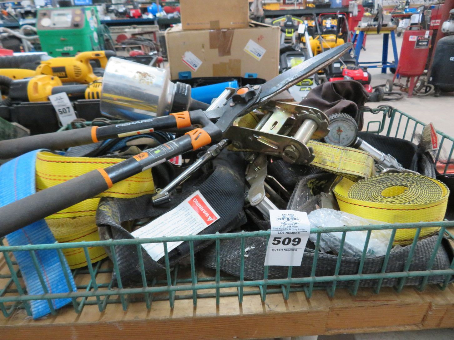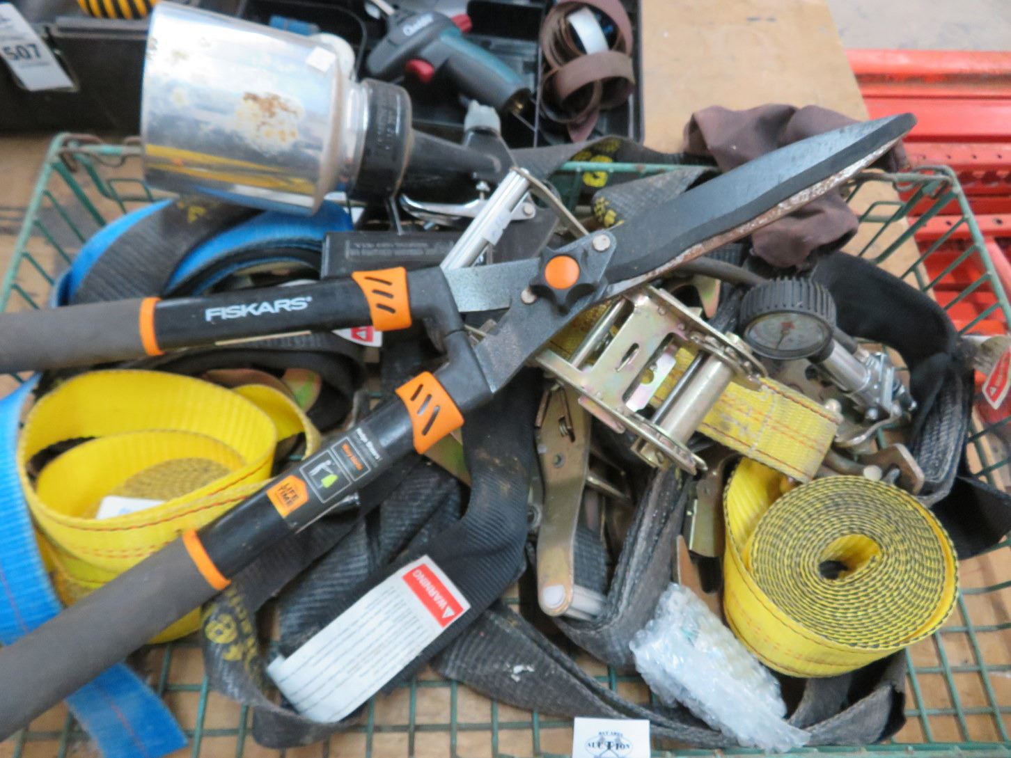 Lot of Tie Down Straps, Paint Sprayer, Harness, Shears and Torch