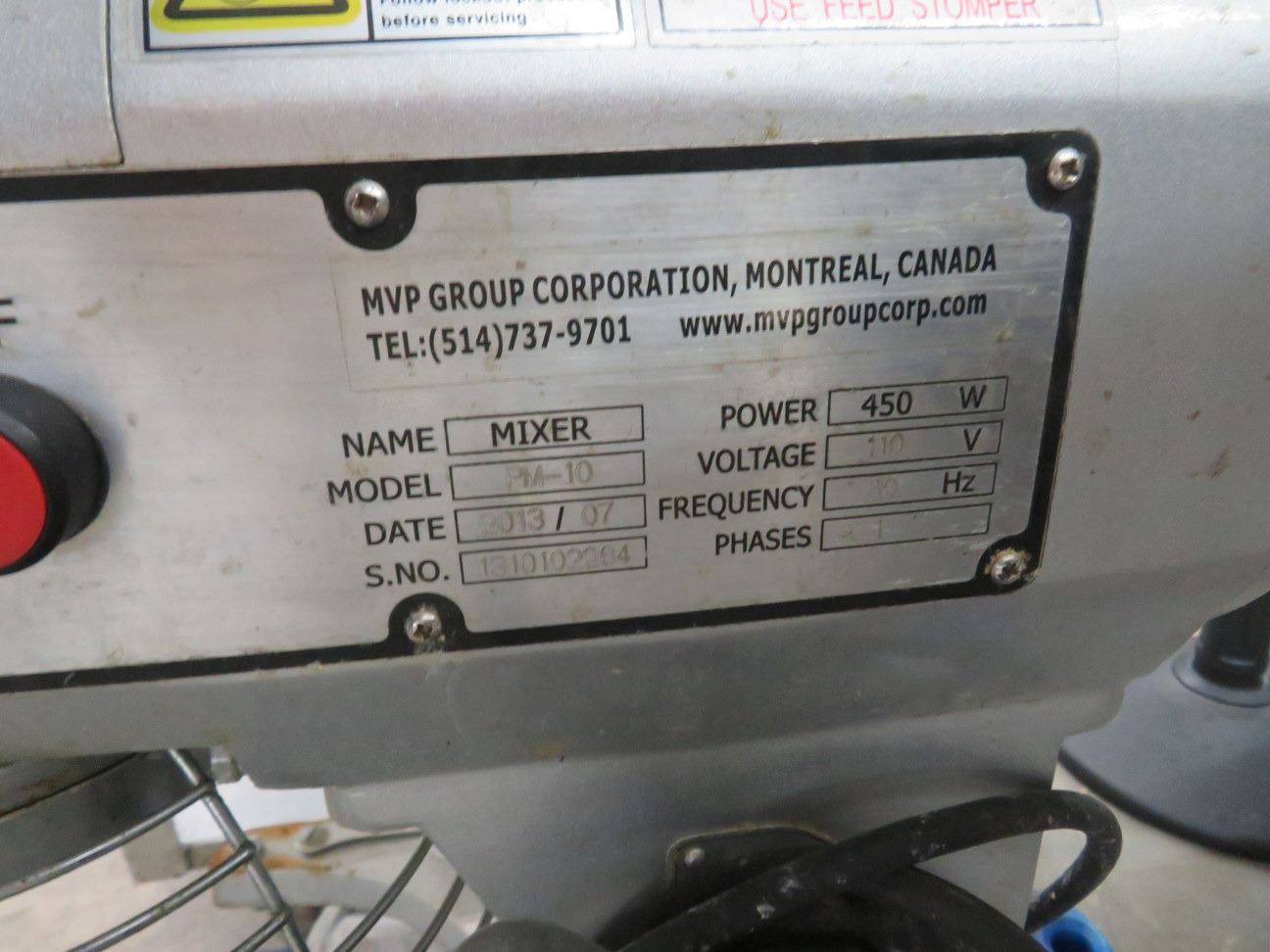 MVP 10 Qt. Mixer w/Paddle and Hook (No Bowl)